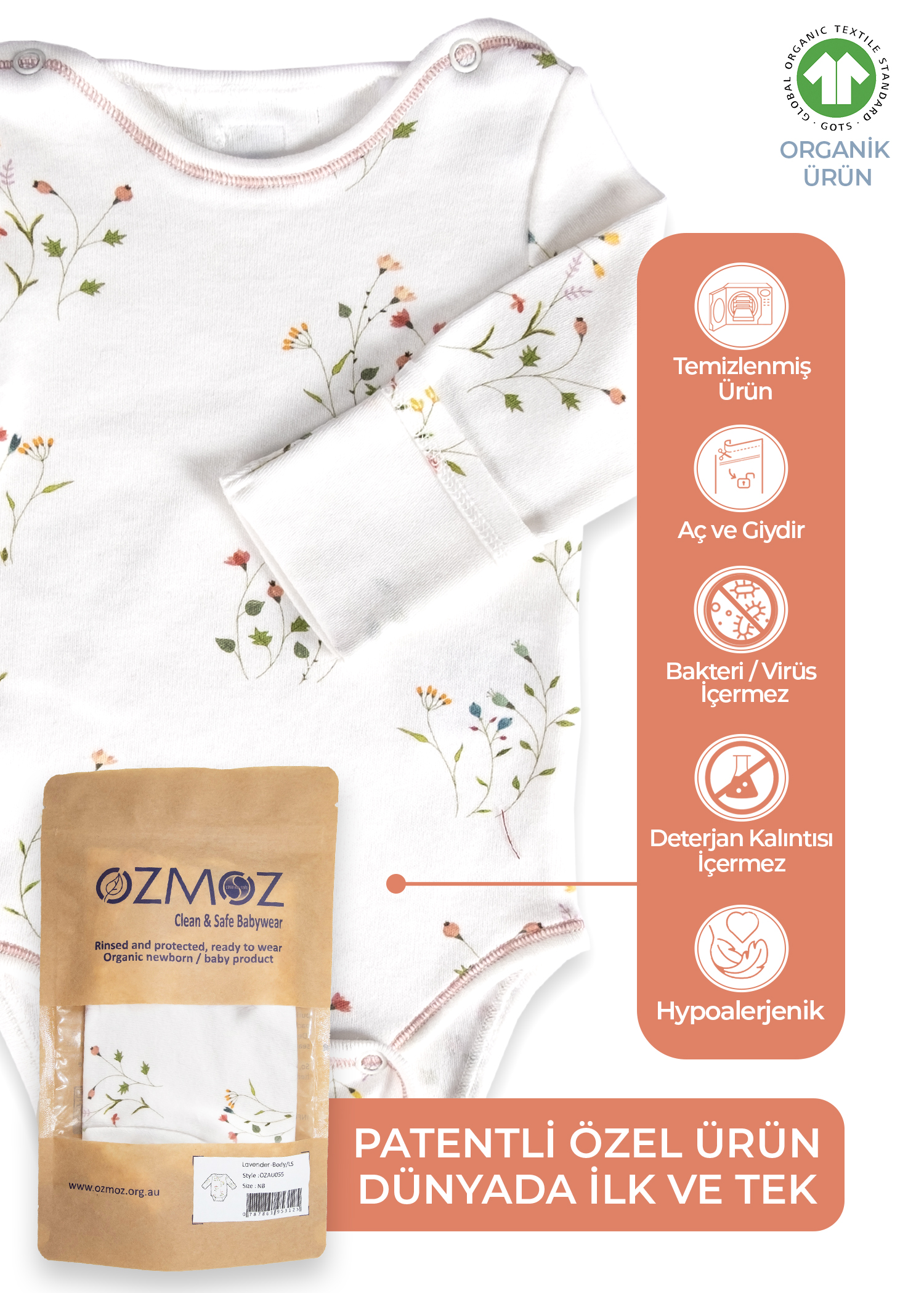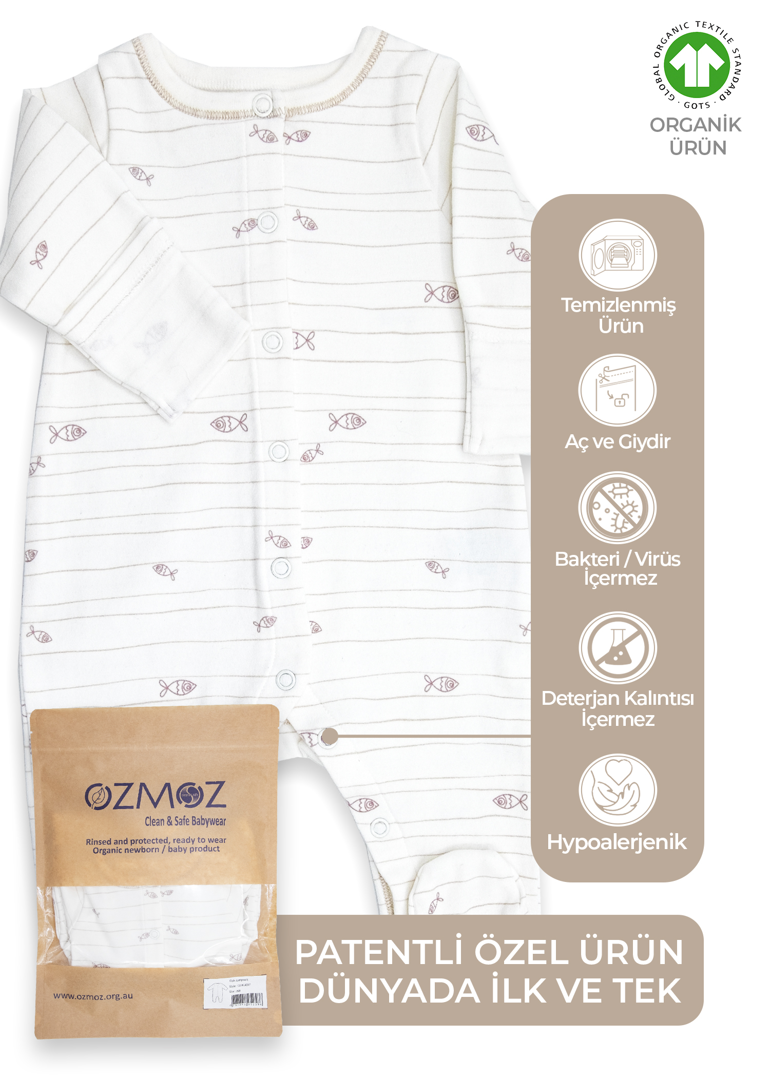 Afterwards, these products are securely sealed in a protective, food-grade package—another patented feature—to preserve their cleanliness. This ensures that garments remain safe from any external contaminants, viruses, or bacteria during transport and storage. You are the very first to open the package, making them completely safe to use for your baby.
